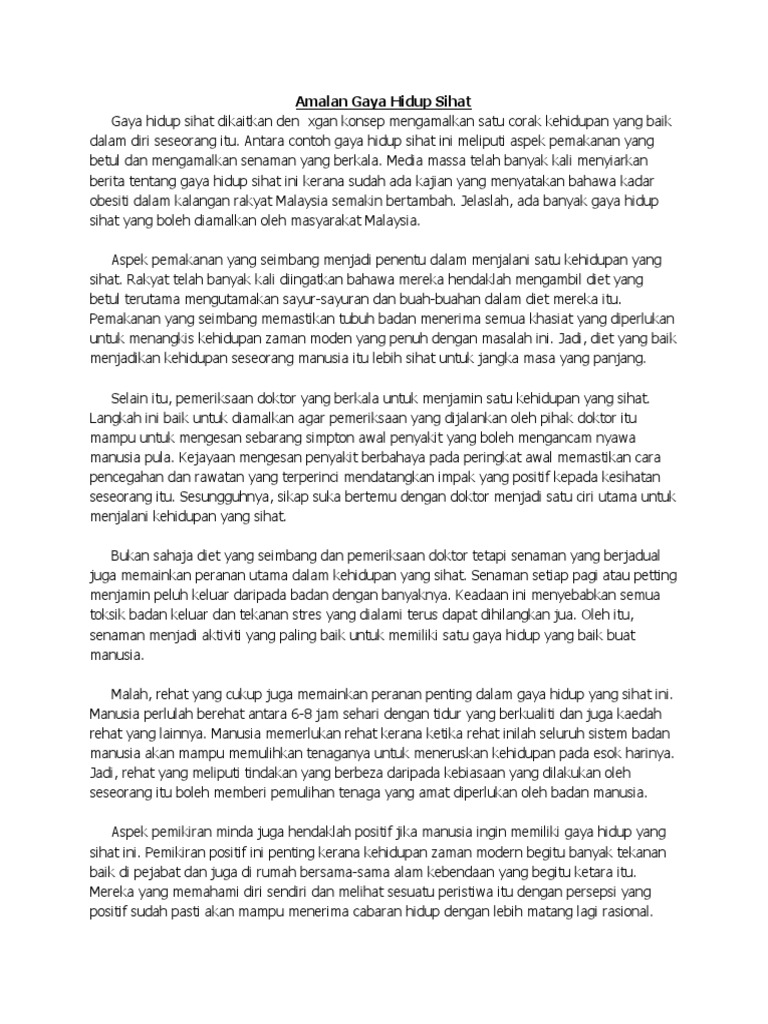 Contoh Karangan Amalan Gaya Hidup Sihat Pdf