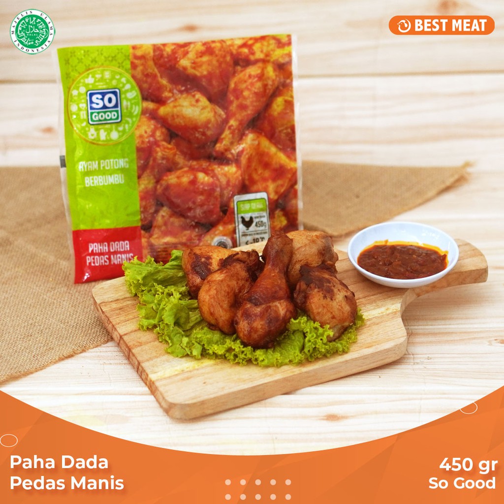 SO GOOD AYAM POTONG PAHA DAN DADA BUMBU PEDAS MANIS 450GRDAGING AYAM di Tokopedia Promo Pengguna Baru Cicilan 0 Kurir Instan. Berikan 1 Buah Kentang. Koloke Ayam Pedas Manis.